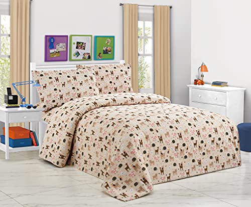 Details: It is a 100% Polyester Kids Bed Sheets Set for girls or boys. Brighten up your kids' room with this bright and colorful cotton sheets set. Description: Elegant and cute design add to your kids' brief bedroom. For these bedsheets, it can be used as sheets in spring and summer or in the winter. With so many vibrant patterns to choose from, choose your favorite and make a beautiful design impact on your bedroom. The rich array of colors will infuse warmth and personality into your home. You will understand why these sets are consistently chosen by top decorators around the globe. Package Includes: Full Sheet Set: 1 Fitted Sheet (54" x 75" + 14") + 1 Flat Sheet (80" x 96") + 2 Pillowcases