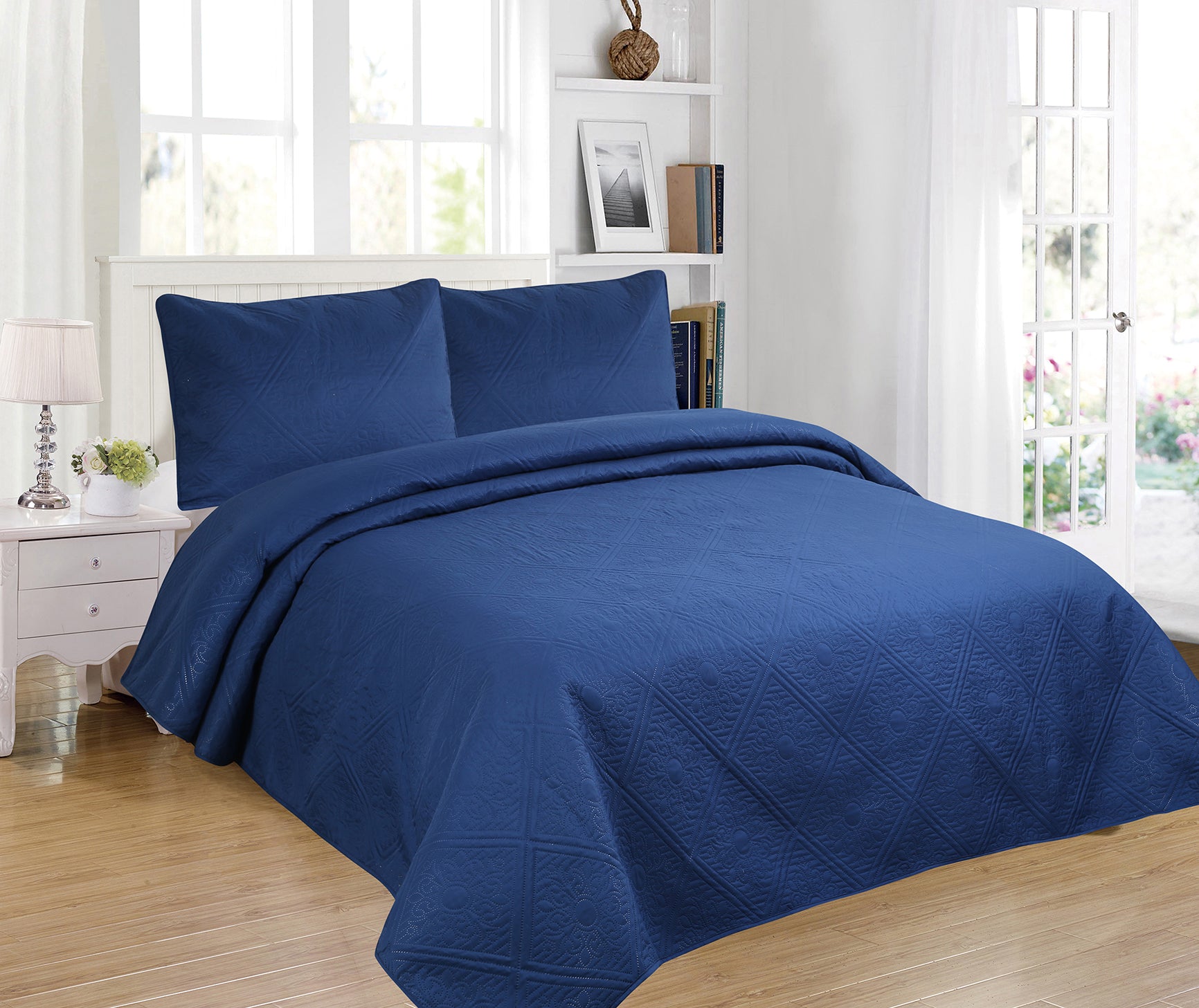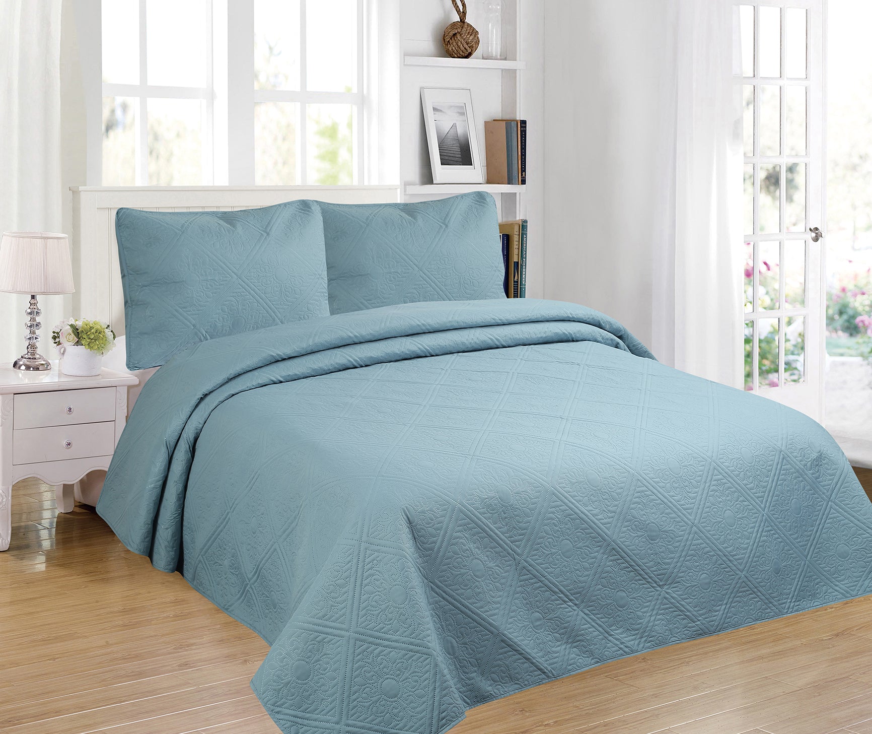 Details: This lightweight coverlet is the perfect finishing touch for your bedroom décor, no matter what the season. The set includes one bedspread and matching pillow sham(s) to finish the look. Both the coverlet and pillow shams are made from 100% Polyester, which makes them washer and dryer safe for total ease of care. The traditional quilt stitching is perfect for transitional décor where traditional and modern elements blend into a unique style.