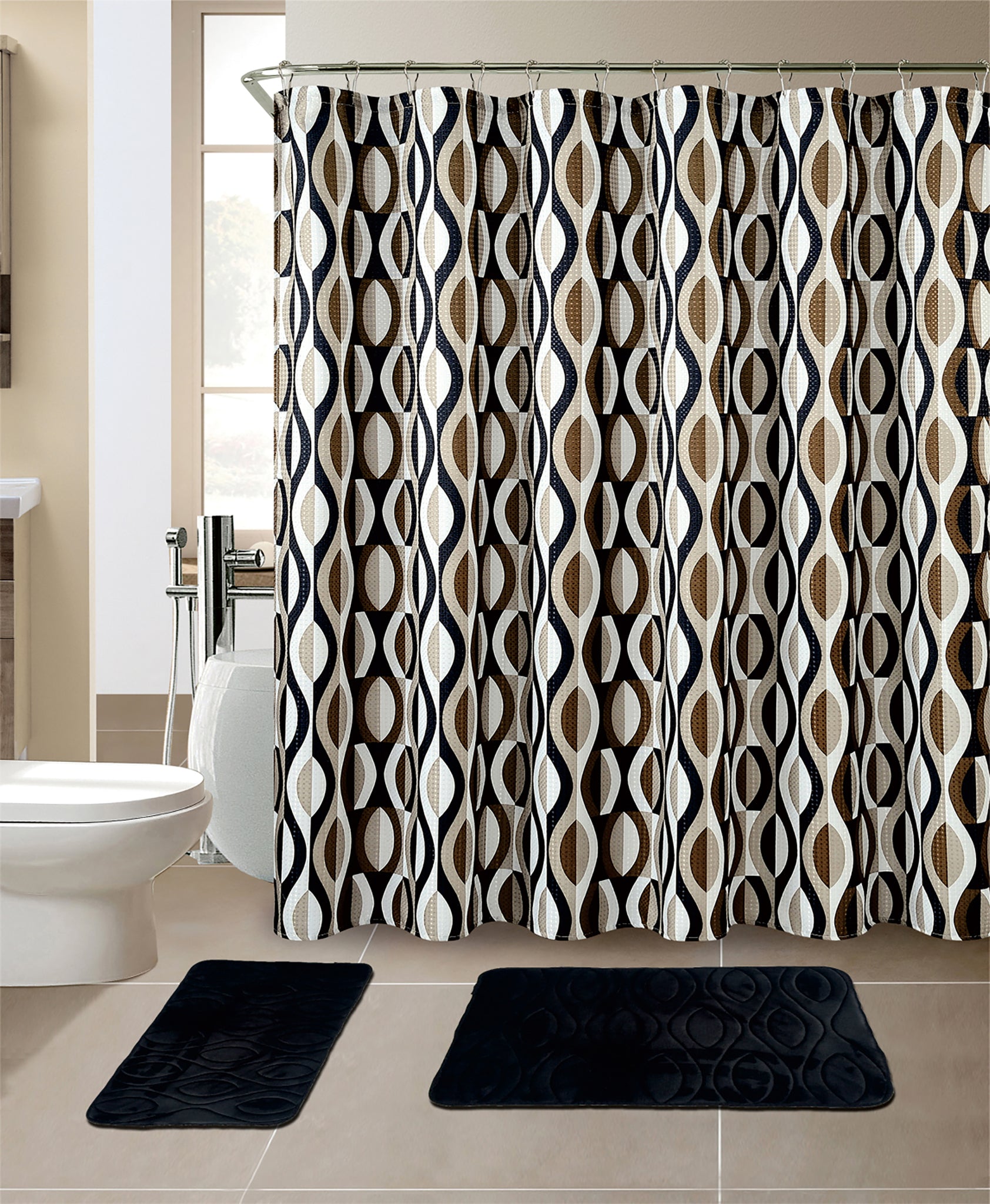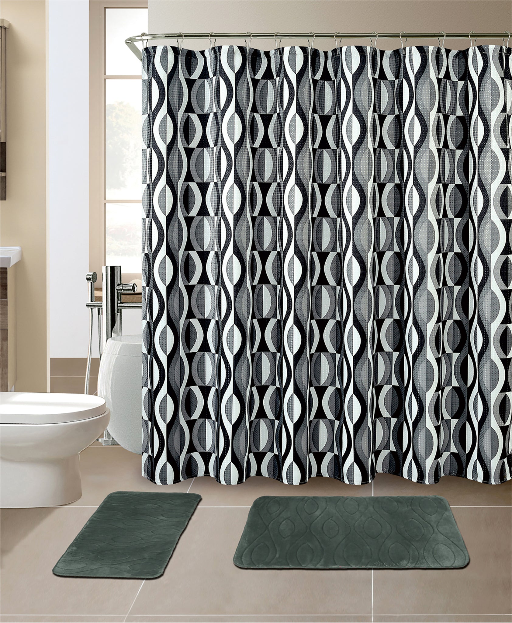 15-Piece Helix Design Bathroom Set With Matching Shower Curtain
