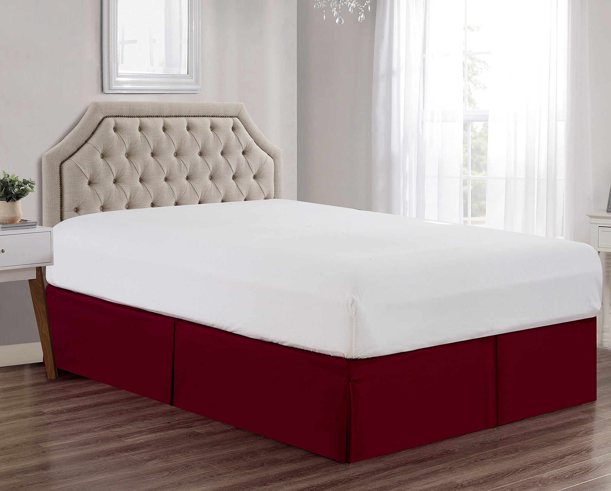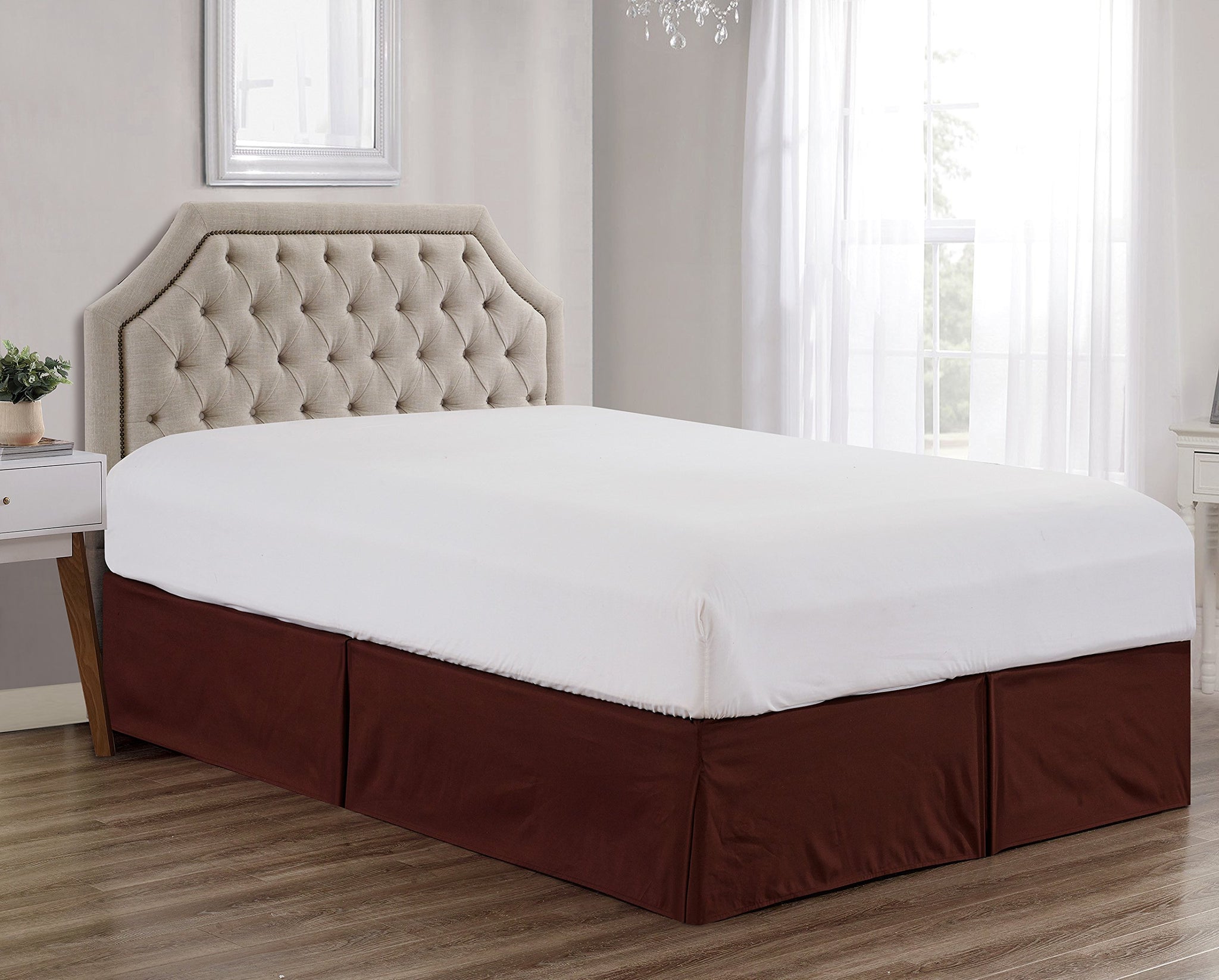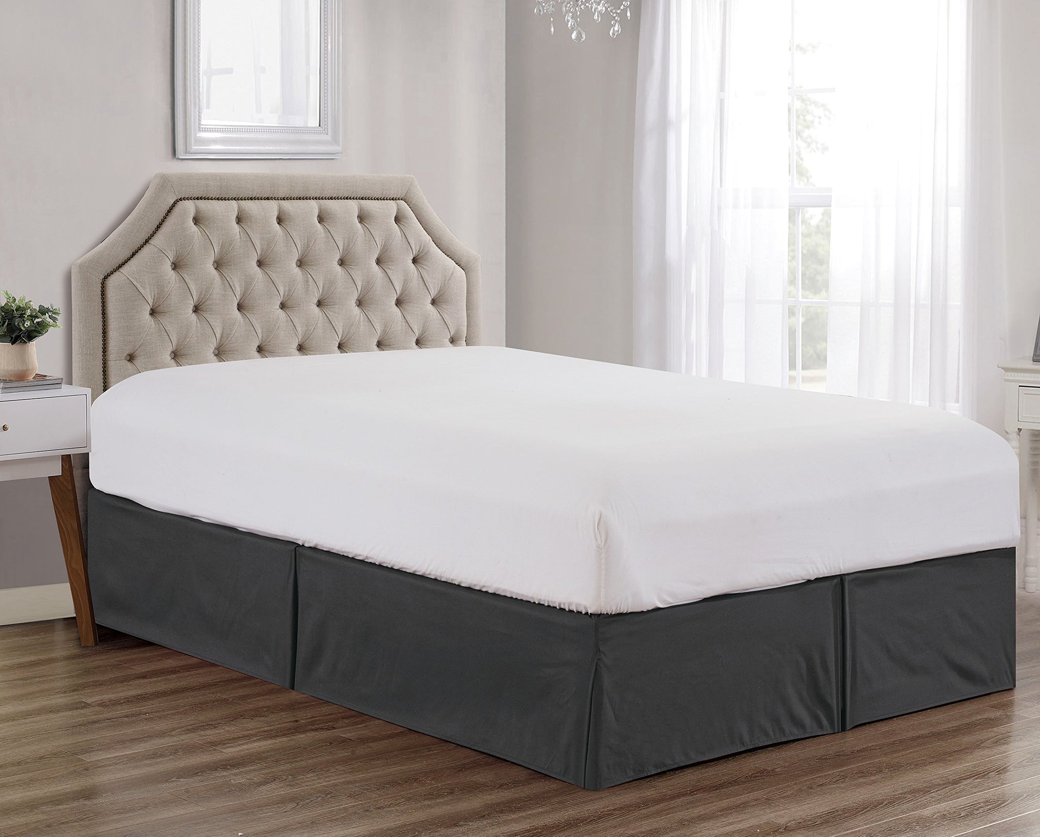 Details: Dress your bed in luxury and quality with The Sheets & Beyond Brushed Microfiber Bed Skirt. This bed Skirt features 14-inch drop that conceals your box spring and bed frame, creating a tidy, unified and contemporary look. Its long length coupled with smooth clear appearance covers your bed perfectly. Also the mitered corners and side pleats brings elegance and style to your bedding décor.