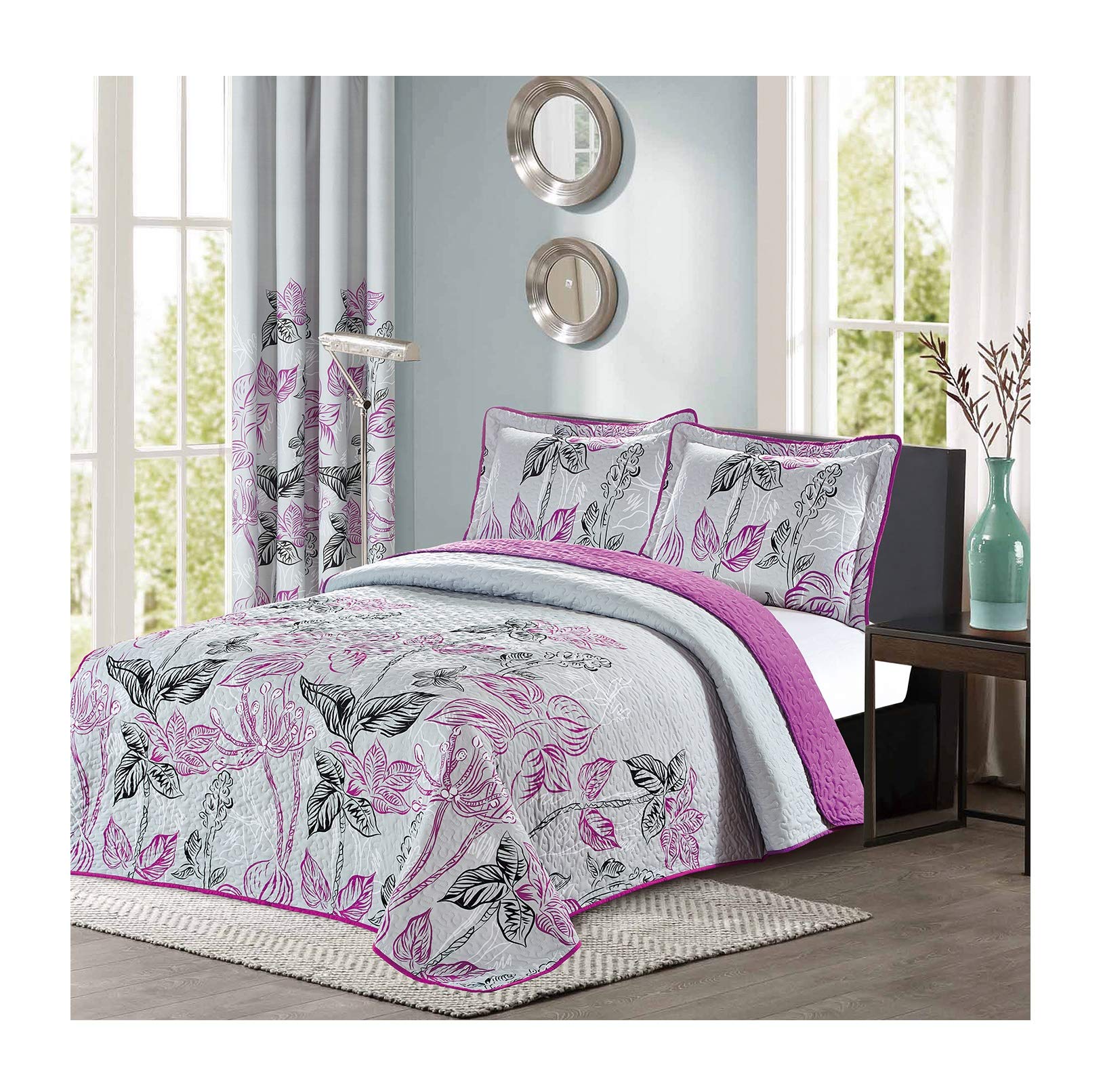 Details: This lightweight coverlet is the perfect finishing touch for your bedroom décor, no matter what the season. The set includes one bedspread and matching pillow sham(s) to finish the look. Both the coverlet and pillow shams are made from 100% Polyester, which makes them washer and dryer safe for total ease of care. The traditional quilt stitching is perfect for transitional décor where traditional and modern elements blend into a unique style.