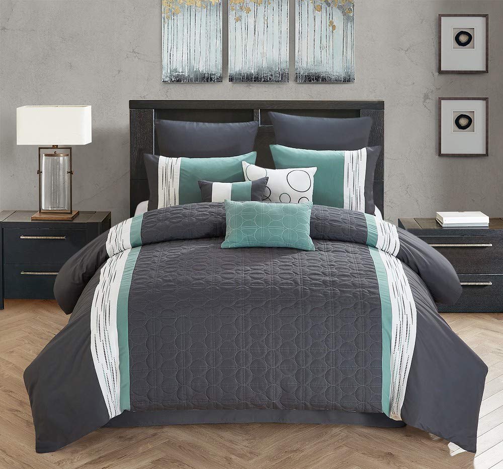 All American Collection New 7 Piece Embroidered Over-Sized Comforter Set