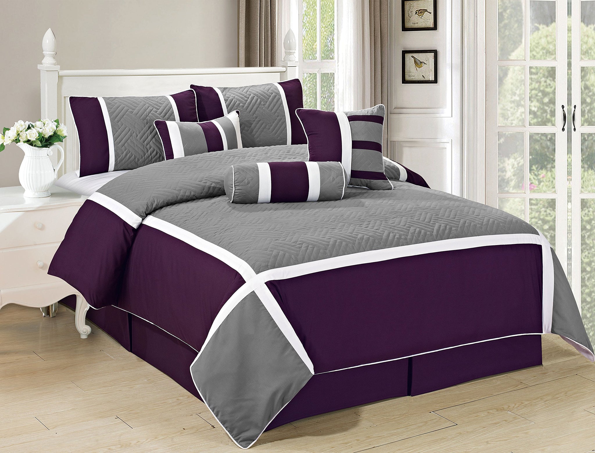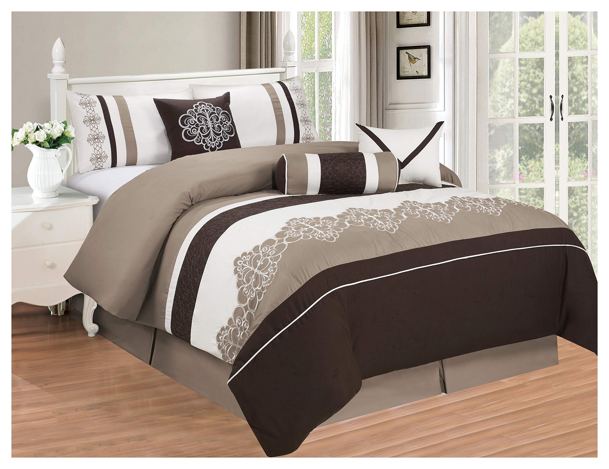 Details: Bring a touch of class into your Bedroom with this 7 Piece Bedding Set. This bed in a bag set will add a touch of warmth and it will create a calm and relaxed atmosphere for your bedroom. Comforter sets are designed to keep you updated and fashionable in the most convenient and inexpensive way. Measure 110" x 96" Our comforter sets are a tremendous blend of bold and vibrant colors. They can transform a room from bleak to bright and cheery in a matter of minutes. Our comforter set will have your bedroom decorated with style. Turn your home into a haven with our beautiful comforter collection. Our comforters come in many sizes, including king comforters, queen comforters, and cal king comforters.We've included everything you need to make over your bedroom such as comforter, pillow shams and bed skirts. Comforter sets are comfortable, durable and beautiful. Our comforter sets are designed for year around comfort