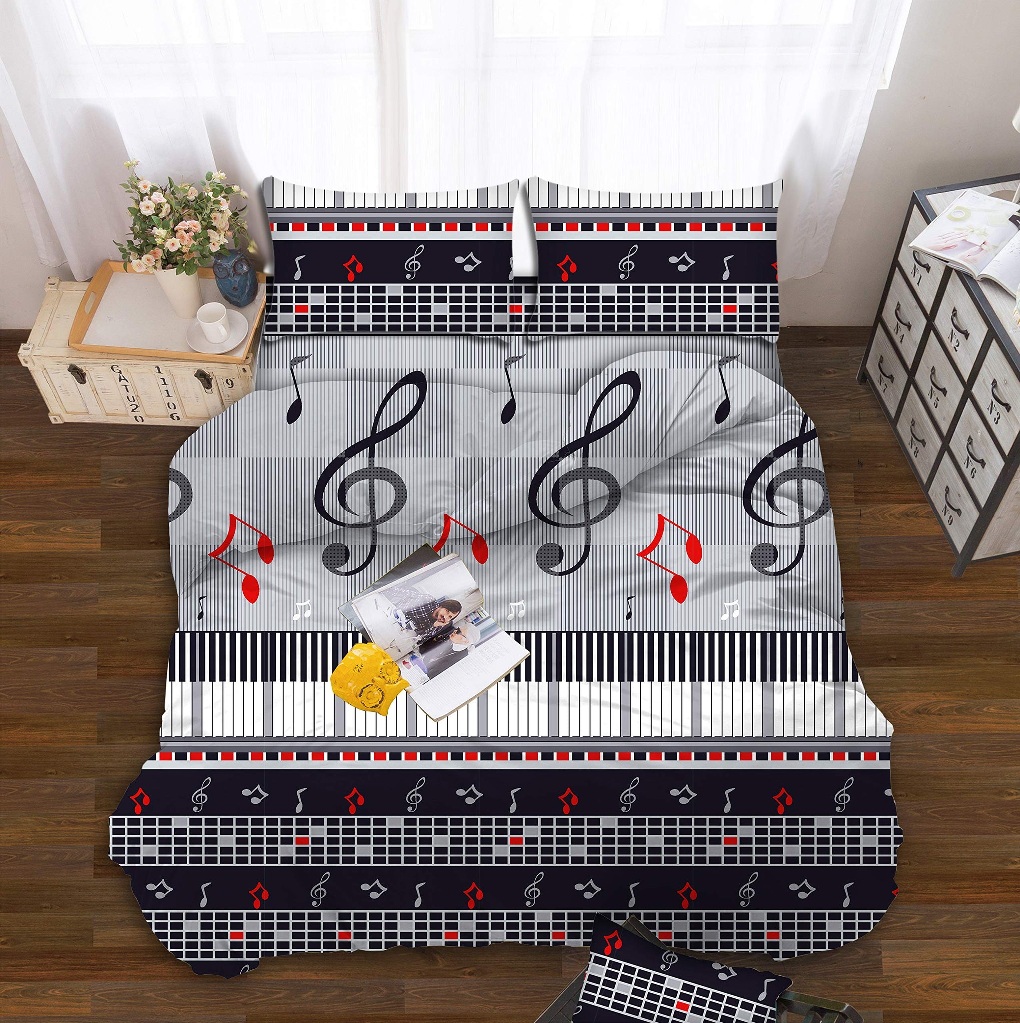 All American Collection Black Music Notes Printed Bedding Sets
