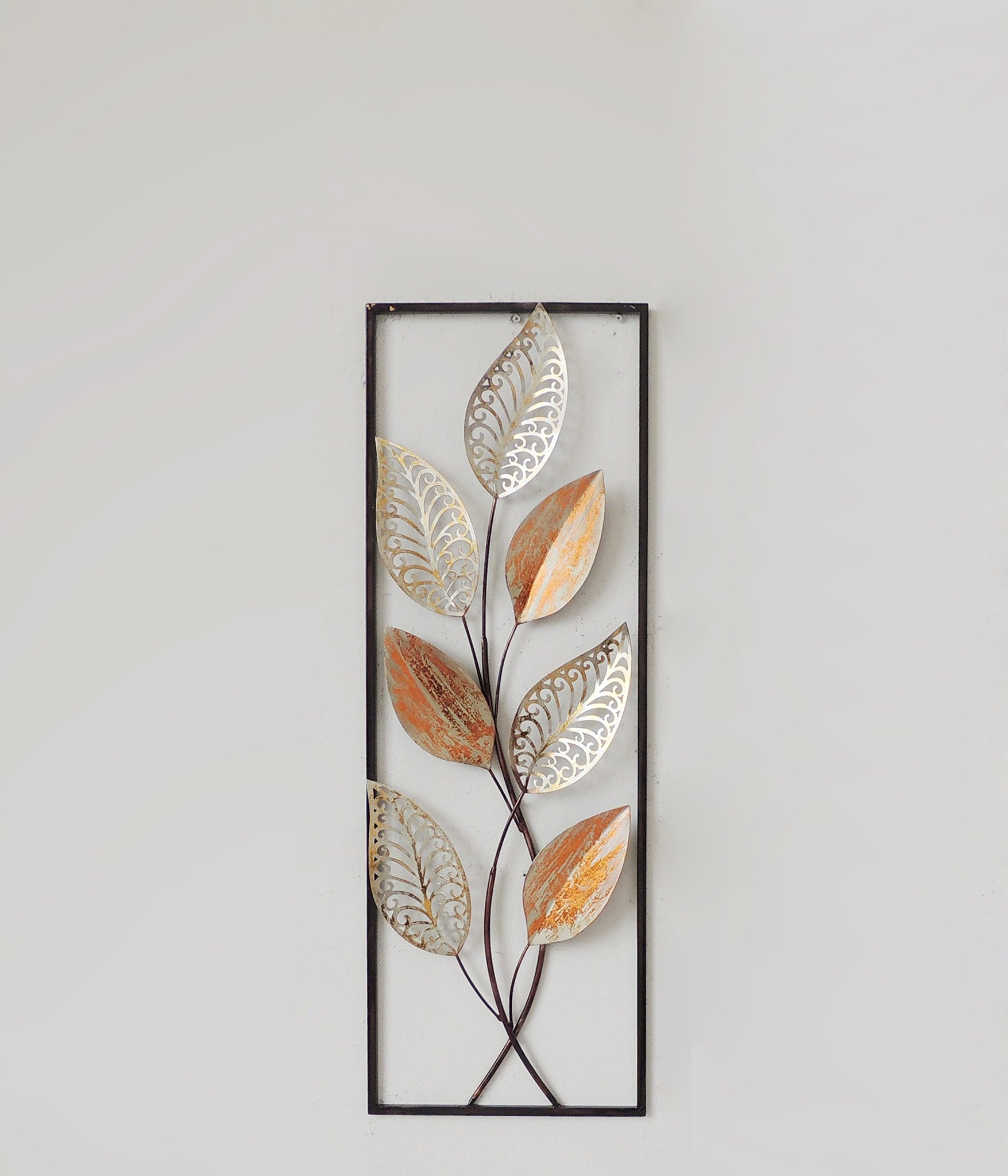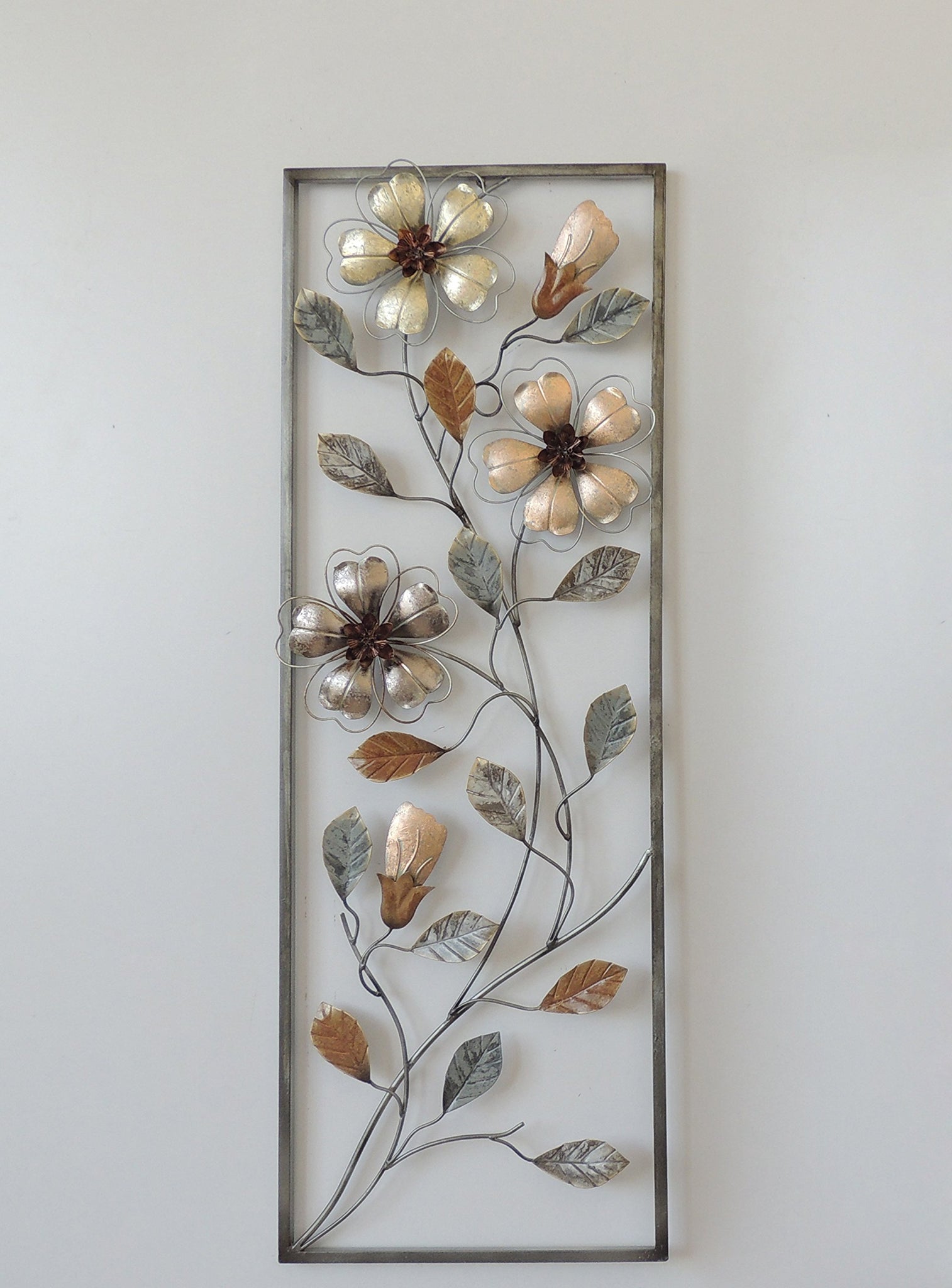 New All American Collection Flower and Leaves Aluminum/Metal Wall Decor with Frame 12"x36"